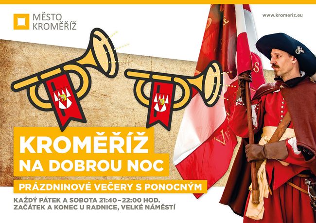 Zpříjemnit letní večery, připomenout dávno zaniklé povolání, pomoci vnímat plynutí času na sklonku dne i popřát lidem dobrou noc. S těmito cíli se o letních prázdninách stejně jako loni vydá do kroměřížských ulic ponocný. A hned dva. Počínaje 2. červencem totiž bude každý páteční a sobotní večer na Velkém náměstí k vidění dvojice trumpetistů, kteří fanfárami symbolicky ohlásí hodinu nočního klidu.